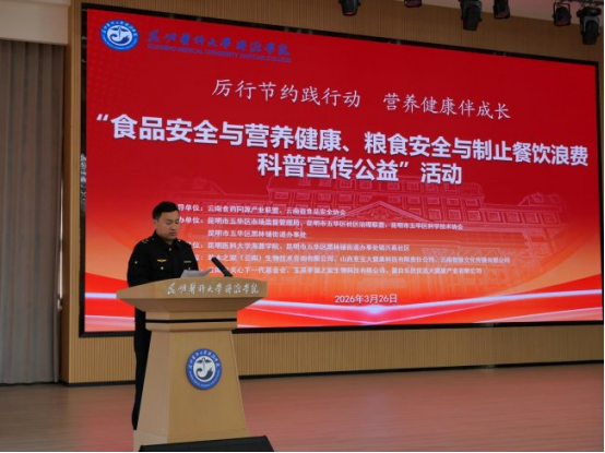 鞭策校园食物平安共治、收集餐饮监管取养分健康学问普及深度融合,养分健康伴成长”为从题的食物平安取养分健康、粮食平安取餐饮华侈科普宣传公益勾当正在昆明医科大学海源学院举行。勾当现场了《云南省收集餐饮办事行业自律公约》及《餐饮华侈·养分健康书》,